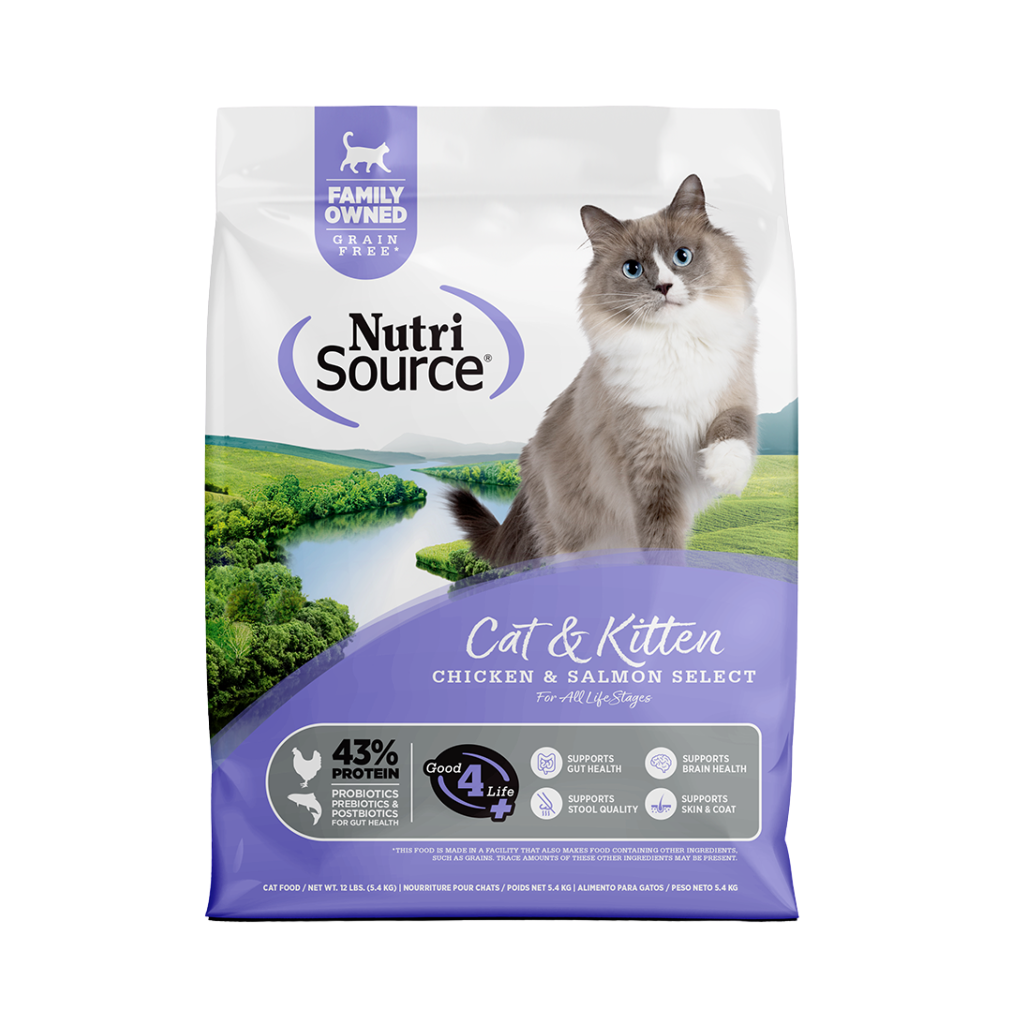 El alimento para gatos NutriSource® Select Chicken & Salmon Recipe está formulado para cumplir con los niveles nutricionales establecidos por los perfiles de nutrientes para alimentos para gatos de la Asociación de Funcionarios Estadounidenses de Control de Alimentos (AAFCO) para todas las etapas de la vida.