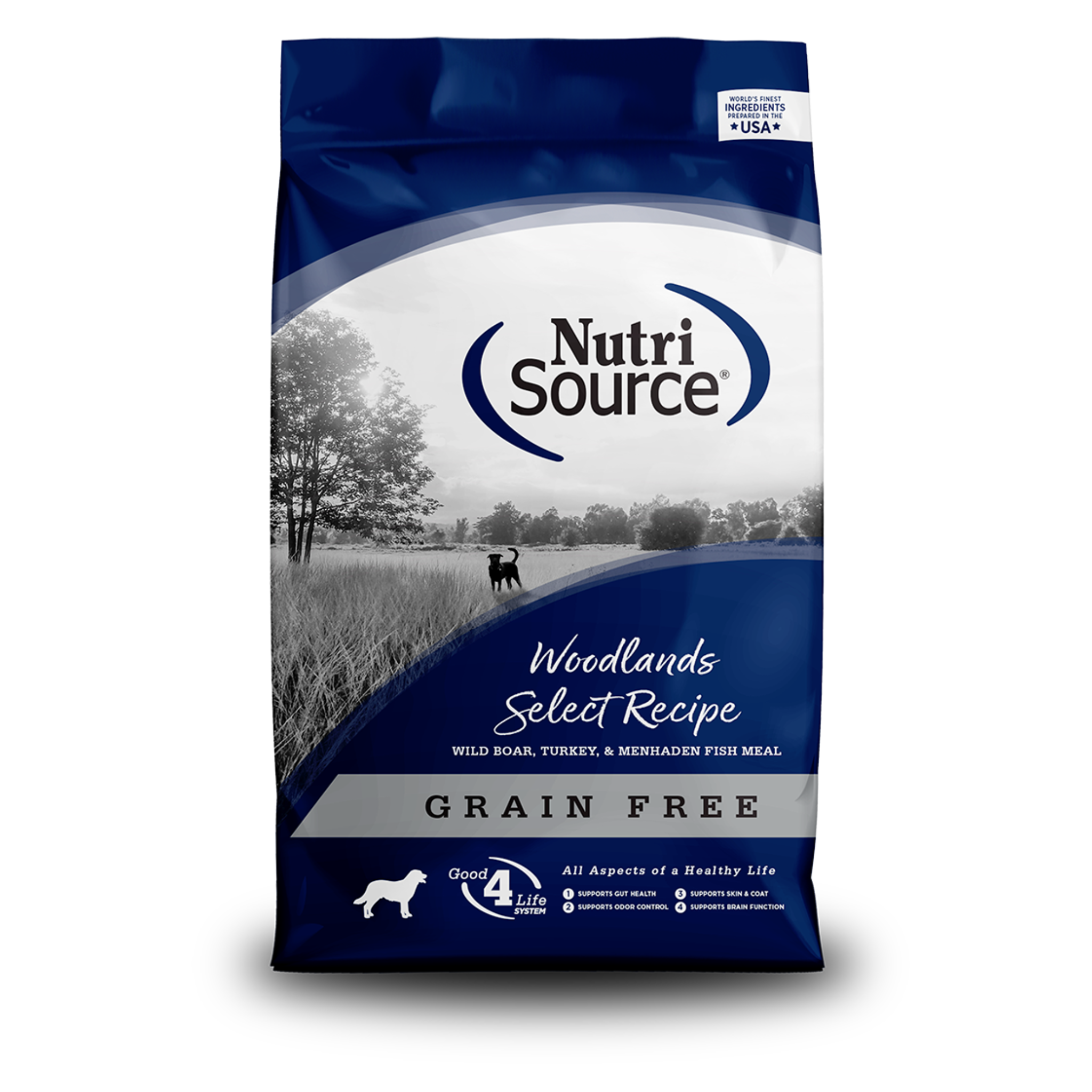 NutriSource® Woodlands Select Grain Free Dog Food está formulado para cumplir con los niveles nutricionales establecidos por los perfiles de nutrientes de alimentos para perros de la Asociación Estadounidense de Funcionarios de Control de Alimentos (AAFCO) para todas las etapas de la vida, incluido el crecimiento de perros de gran tamaño (70 lb o más como adulto).