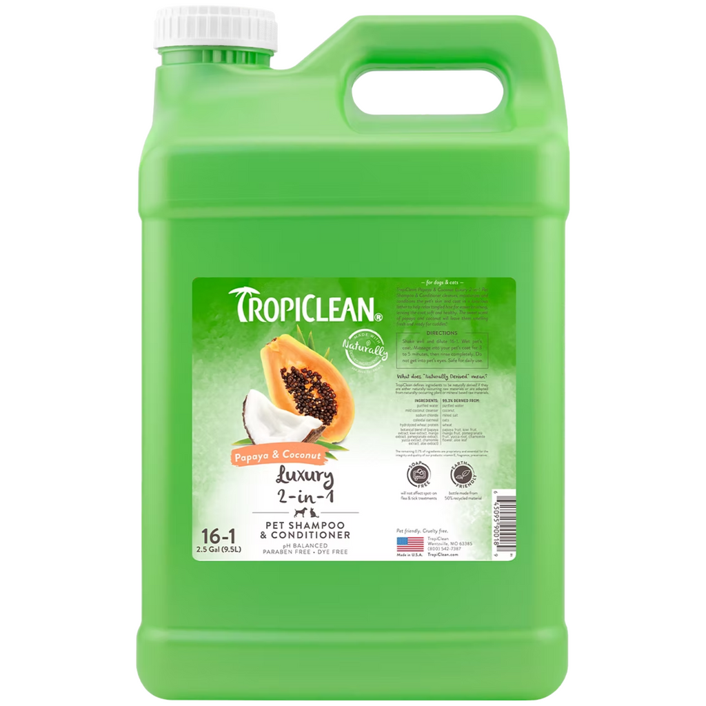 TropiClean Papaya & Coconut Luxury 2-in-1 Dog & Cat Shampoo & Conditioner limpia, hidrata y acondiciona la piel y